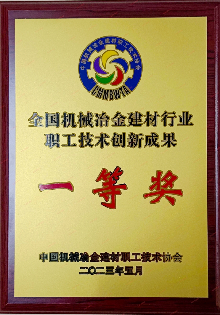 “全國(guó)機(jī)械冶金建材職工技術(shù)創(chuàng)新成果”一等獎(jiǎng)